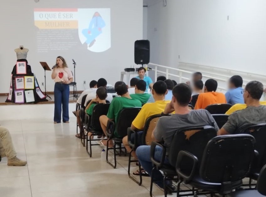 Socioeducandos da Unidade de Internação Socioeducativa (Unis) do Instituto de Atendimento Socioeducativo do Espírito Santo (Iases), em Cariacica, participaram de uma atividade pedagógica em alusão ao Dia Internacional da Mulher, desenvolvida pela Escola Estadual de Ensino Fundamental, Médio e de Tempo Integral (EEEFMTI) Professora Márcia Souza da Silva, escola referência da unidade.
